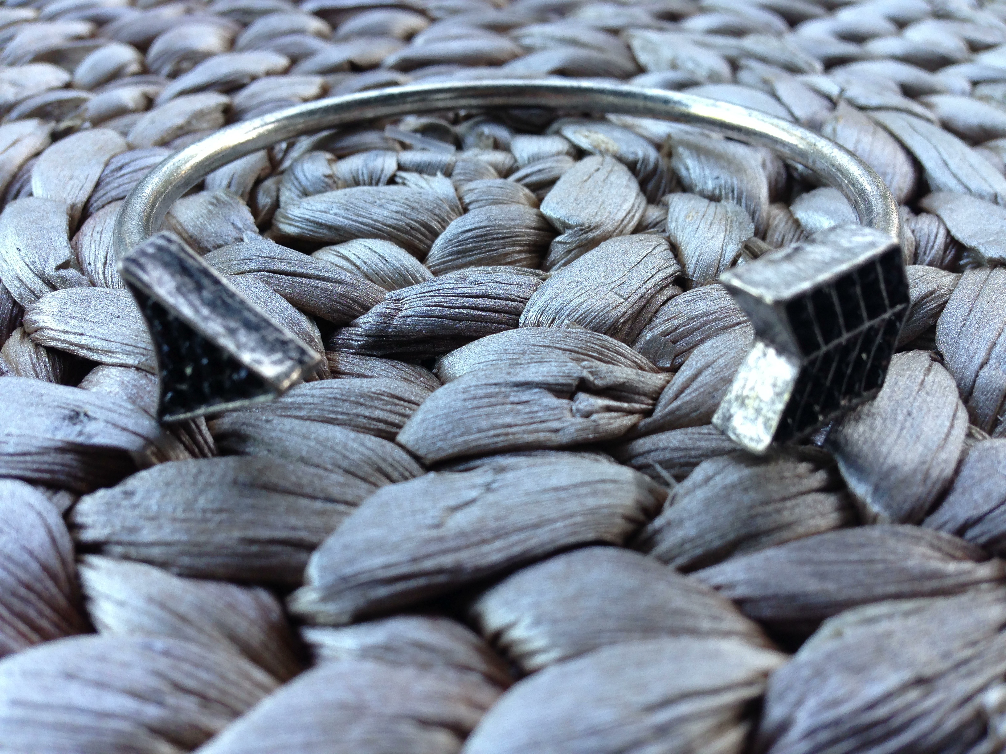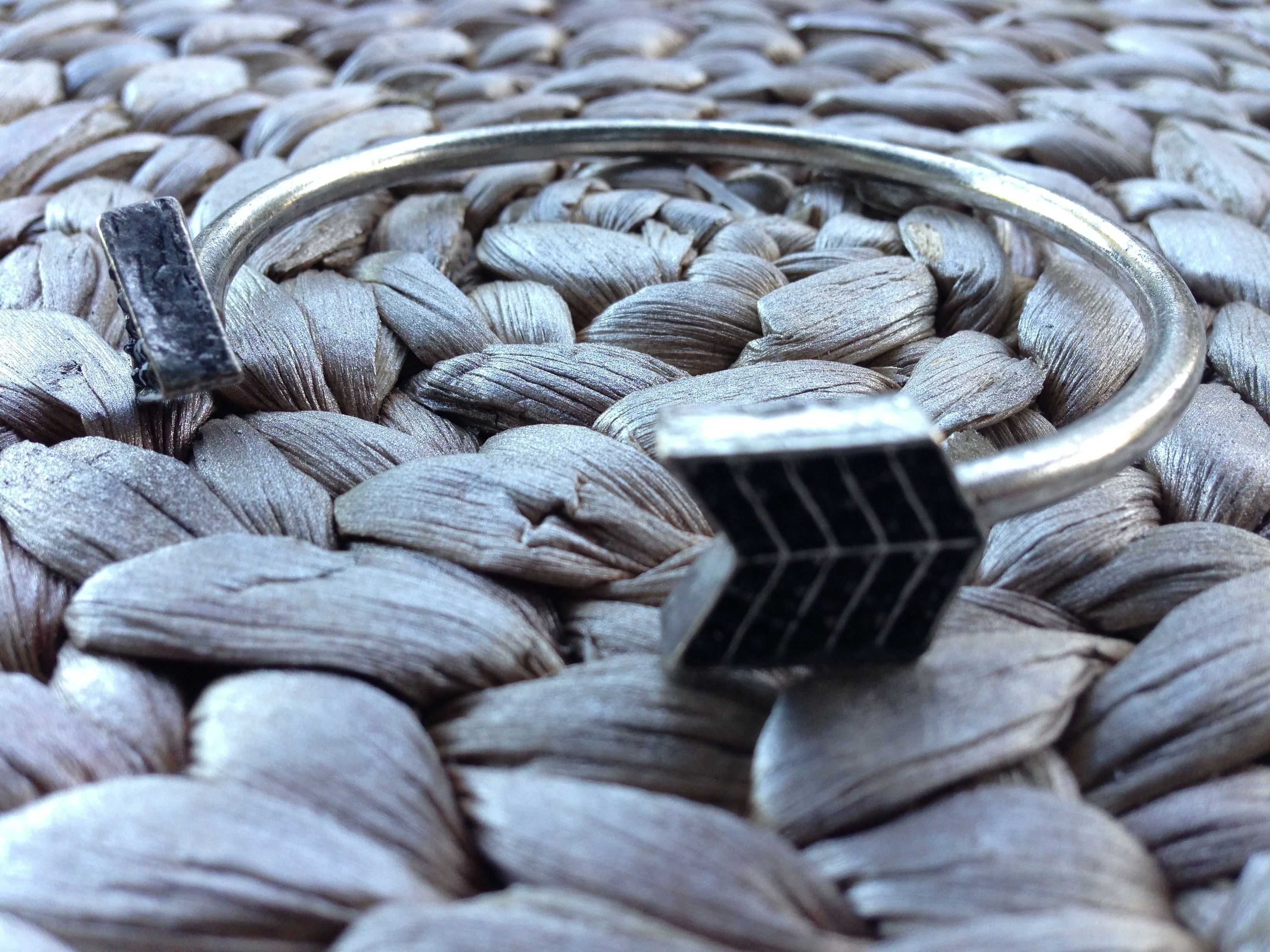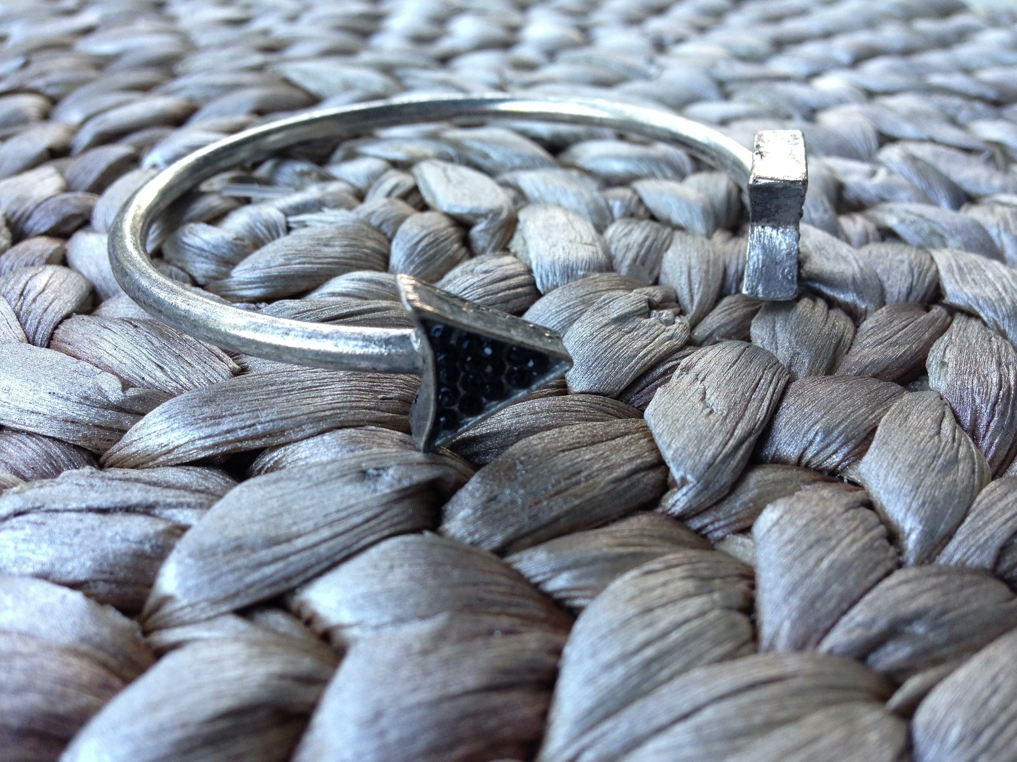Silver Arrow Cuff with black embedded rhinestones.