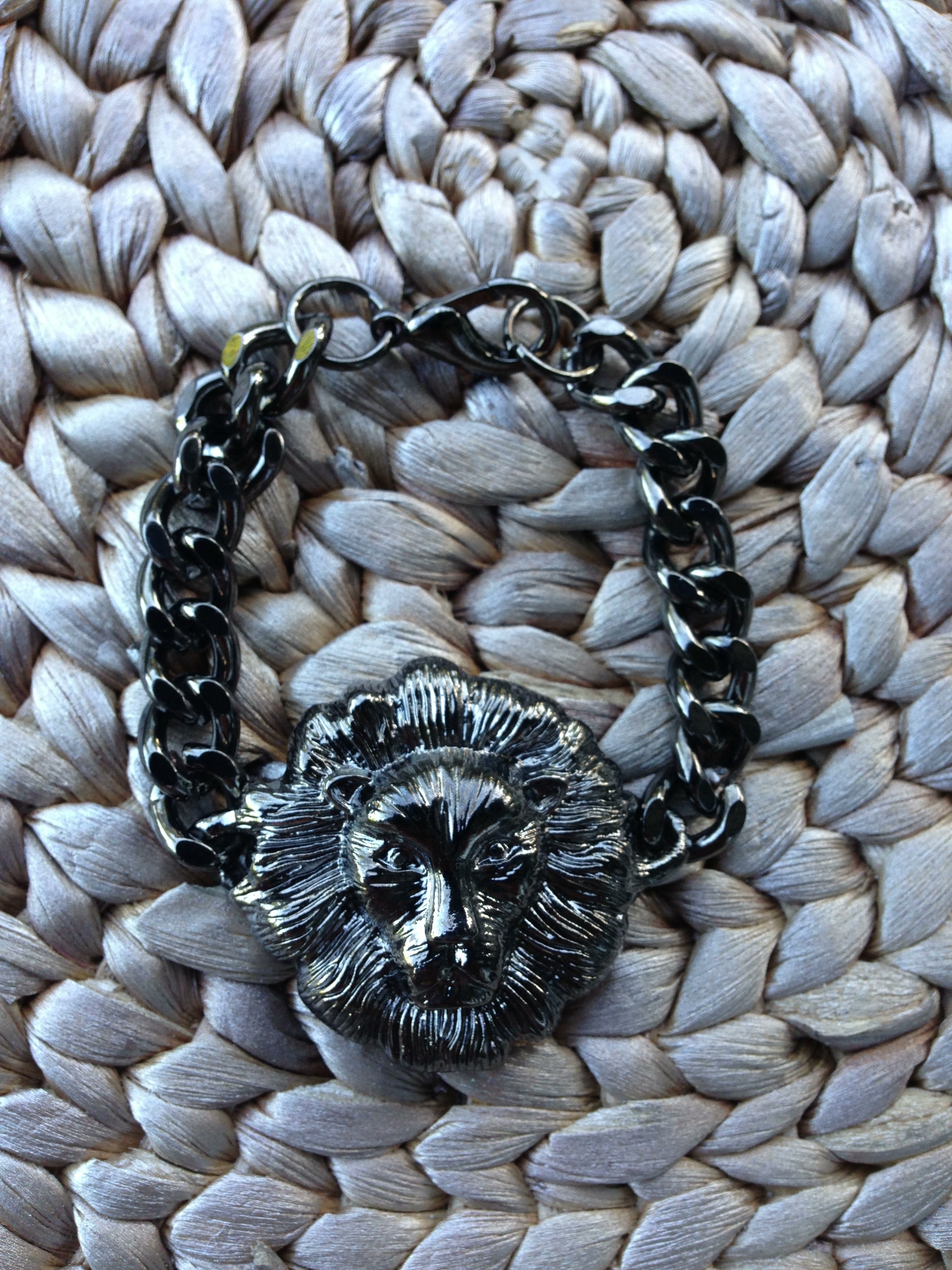 Leo Head Bracelet- Gun Metal Black chain bracelet.