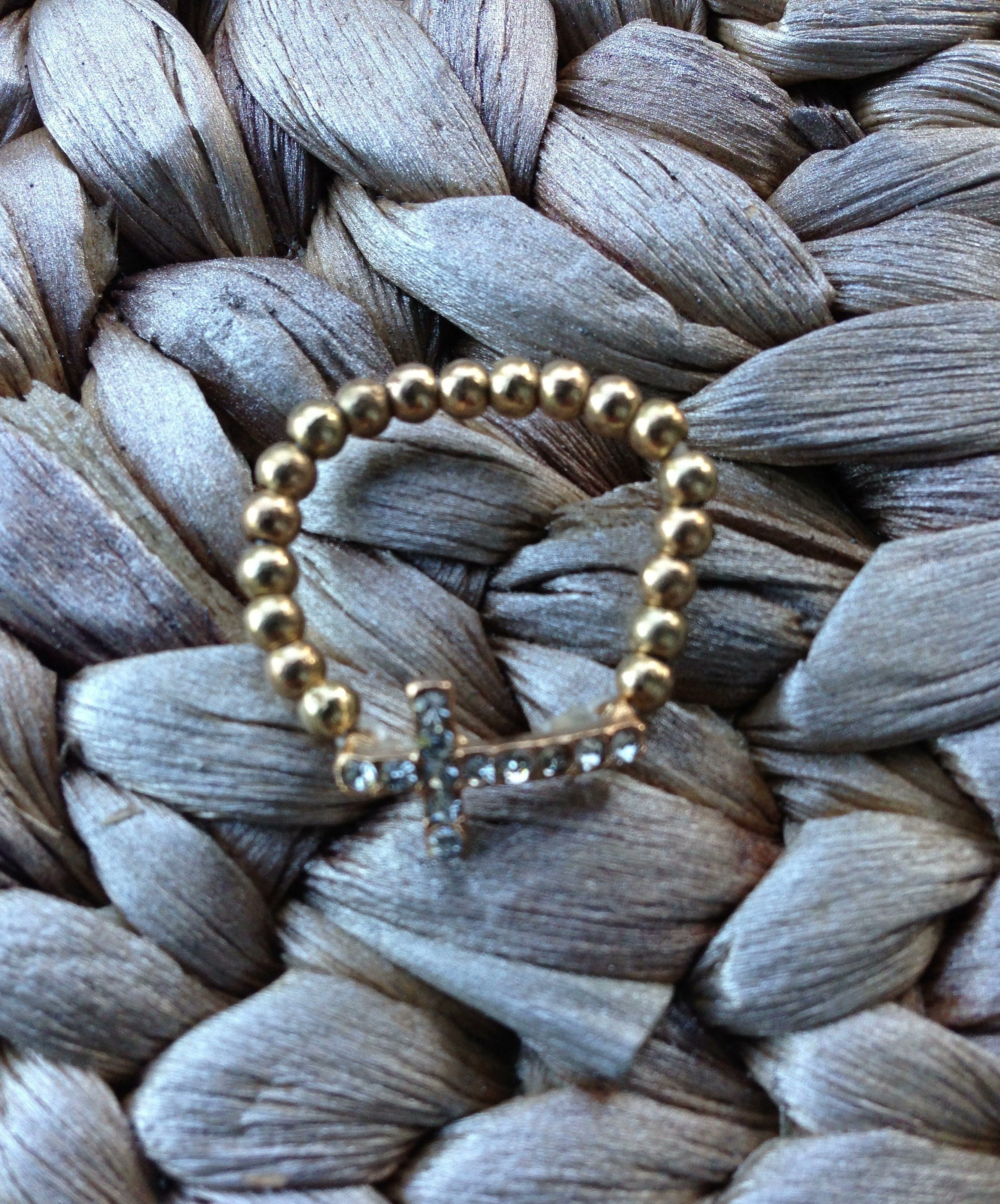 Beaded stretch ring with white encrusted rhinestones.