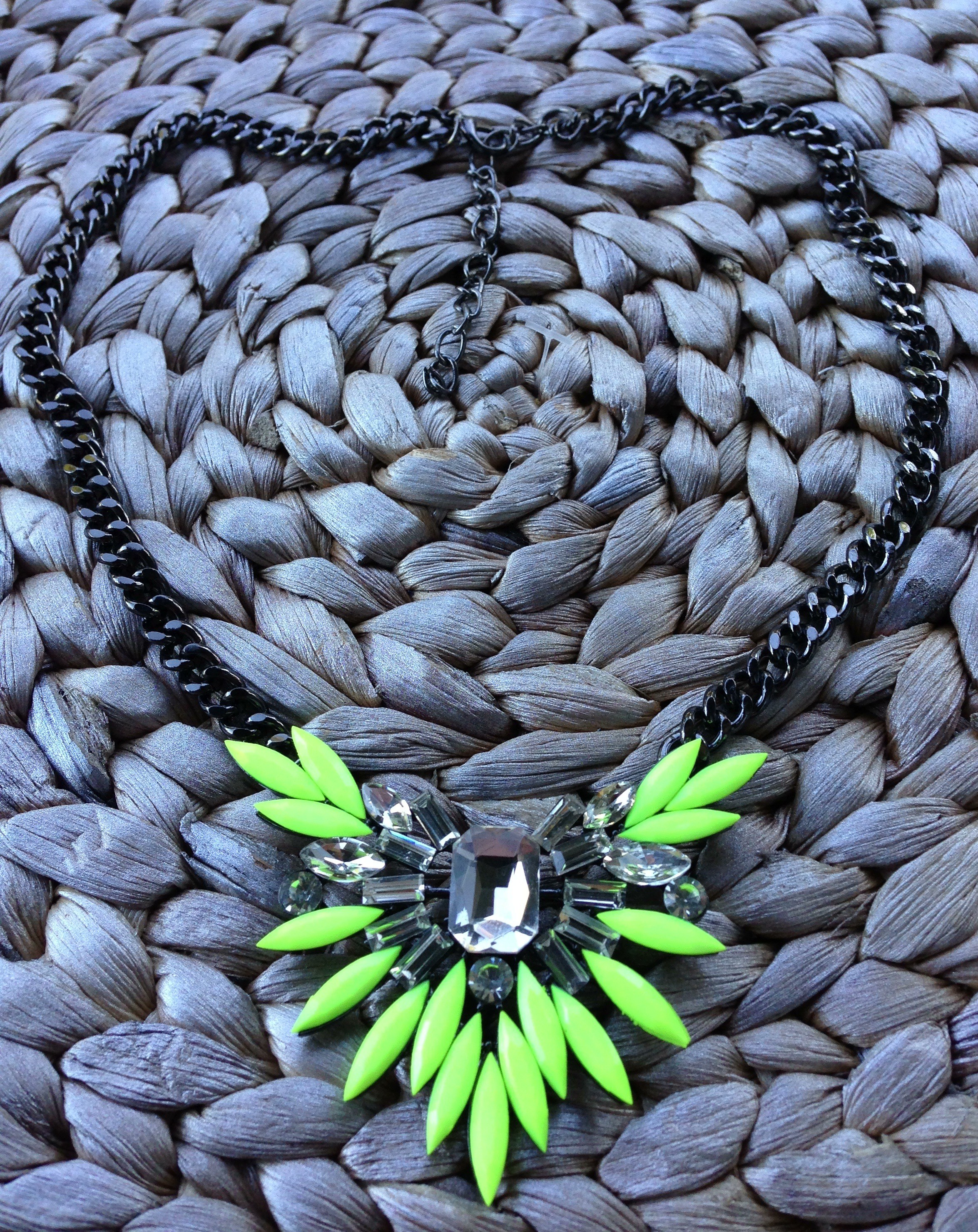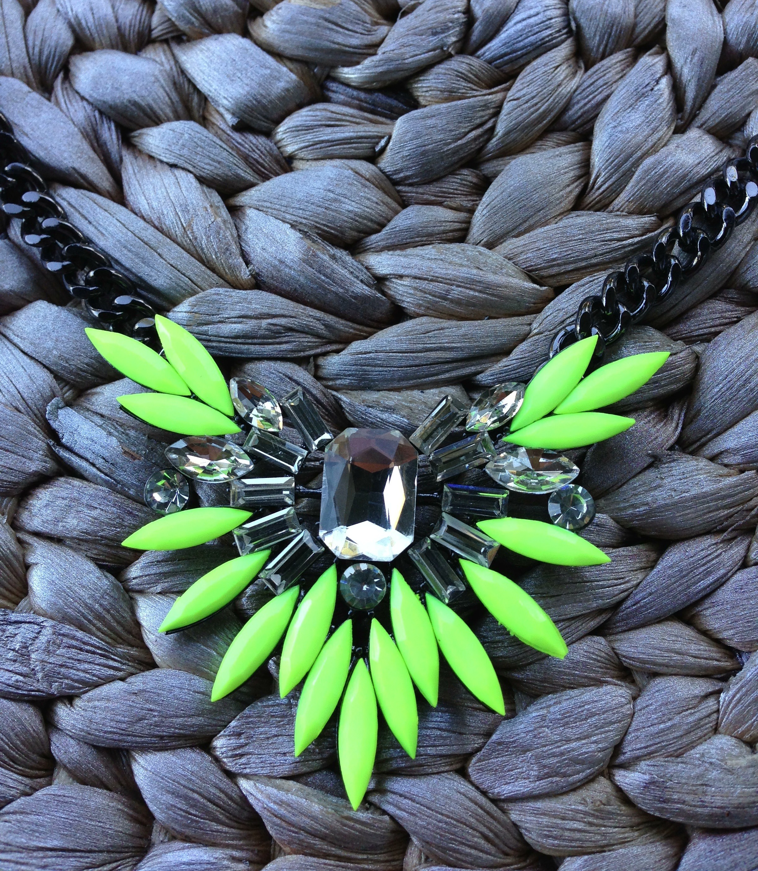 Electric Neon yellow and clear classy stones, an eclectic chic necklace perfect for any diva, we think so.